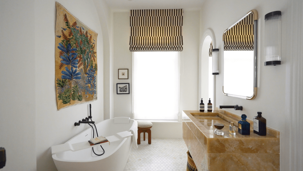 Benni Frowein, Schumacher’s European CEO, takes us inside his gallery-worthy flat in London’s Chelsea neighborhood. The German native shares his clever tricks for expertly using textiles throughout the home (think: large-scale geometric wallpaper panels on the walls and floor of his kitchen), his design philosophy, and the last thing he does before a room is finished.