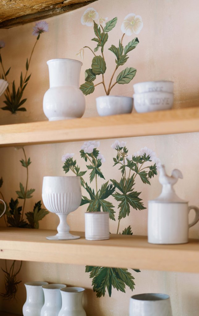 At the Cutter Brooks shop in Stow on the Wold, Amanda Brooks’ collection of dried Herbarium specimens inspire a custom edition of the Botanical Studies wallpaper created with de Gournay by Michael S. Smith.
