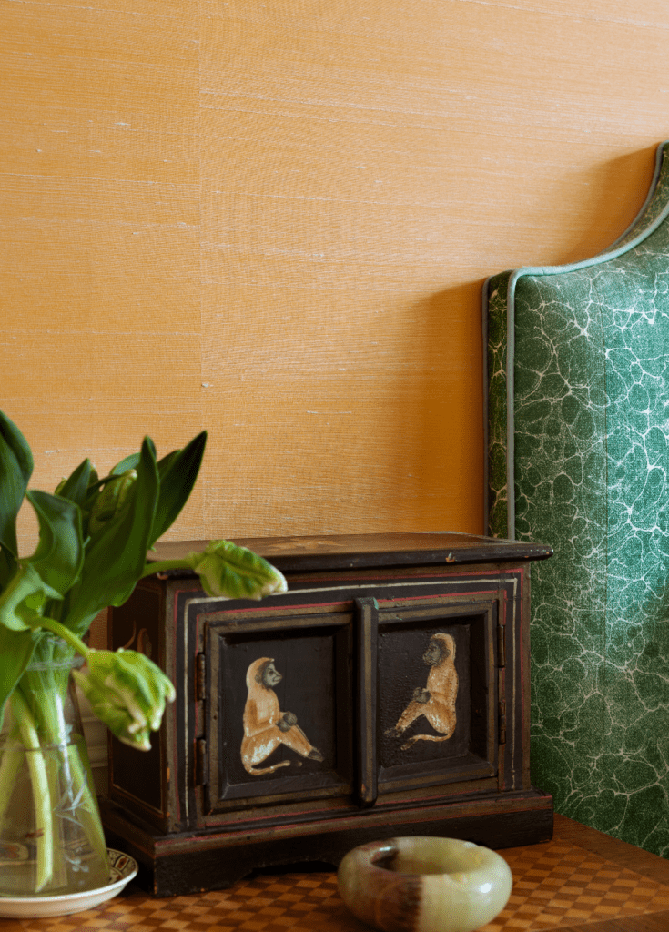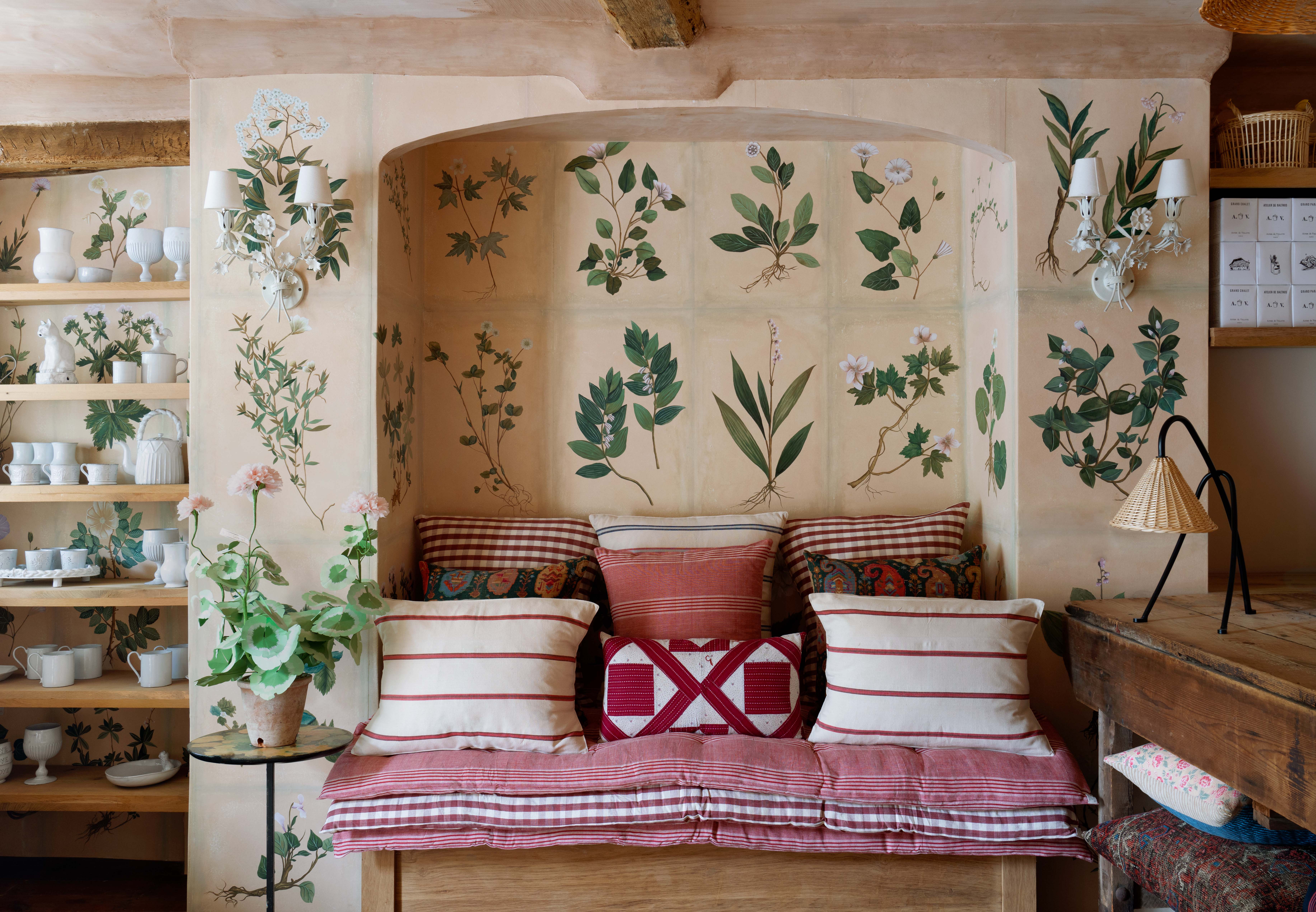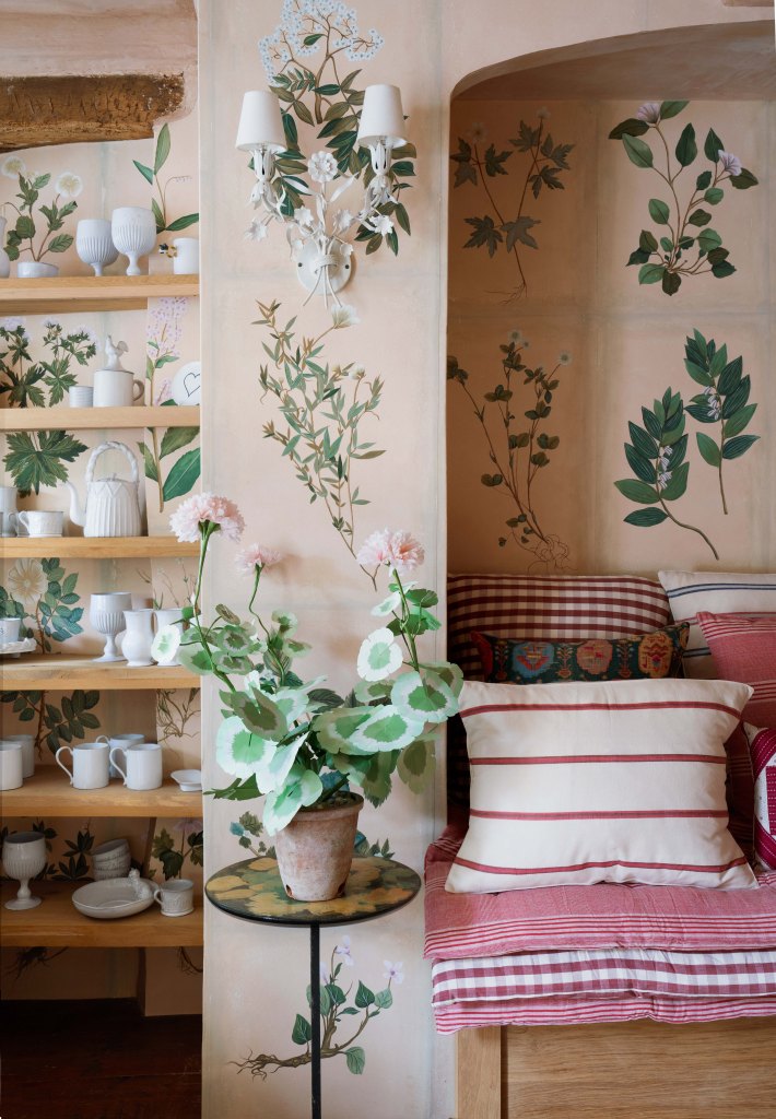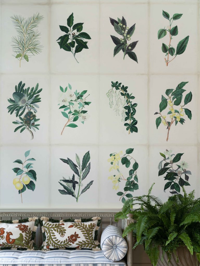 CUTTER BROOKS. At the Cutter Brooks shop in Stow on the Wold, Amanda Brooks’ collection of dried Herbarium specimens inspire a custom edition of the Botanical Studies wallpaper created with de Gournay by Michael S. Smith.