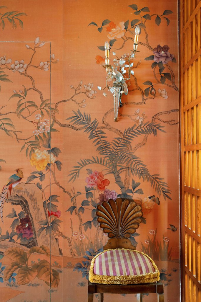 Sourced from de Gournay’s archive of vintage wallpaper panels – designs hand painted over 20 years ago – Marta Ferri has installed ‘Jardin Chinois’ within the entrance of her Varese home, just outside of Milan.